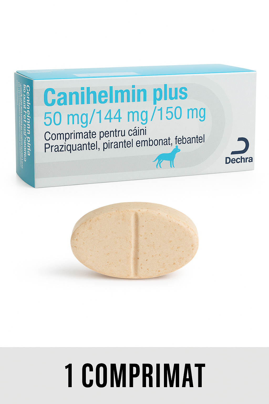 Canihelmin plus 50 mg/144 mg/150 mg comprimate pentru câini.